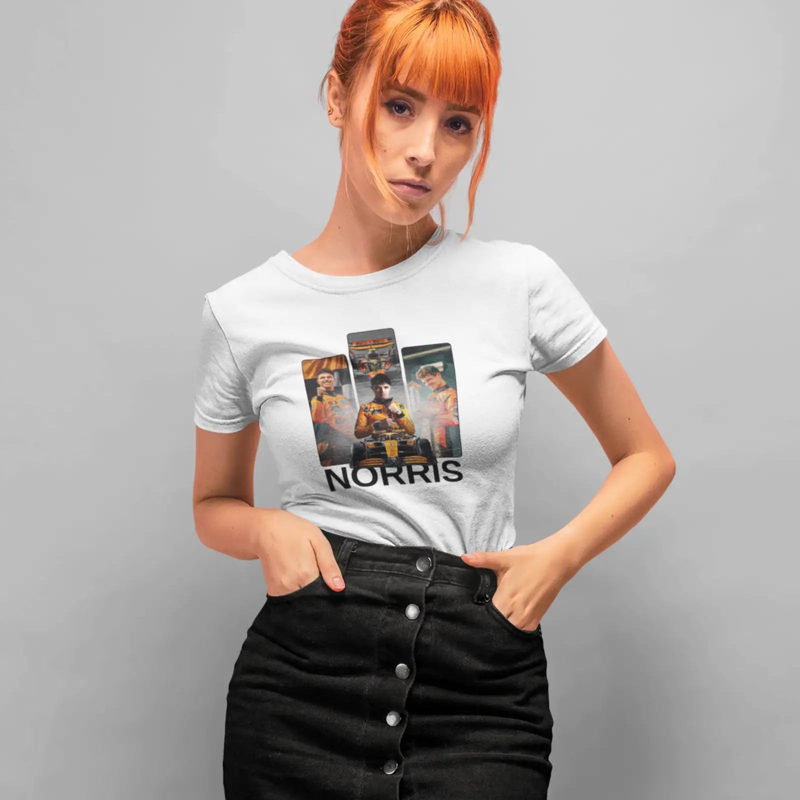 Tričko pro fanoušky Landa Norrise, talentovaného britského závodníka McLaren F1. Design oslavuje rychlost, charisma a vášeň pro motorsport. Perfektní pro fanoušky Formule 1, kteří sledují každý závod a fandí McLarenu a Landu Norrisovi.