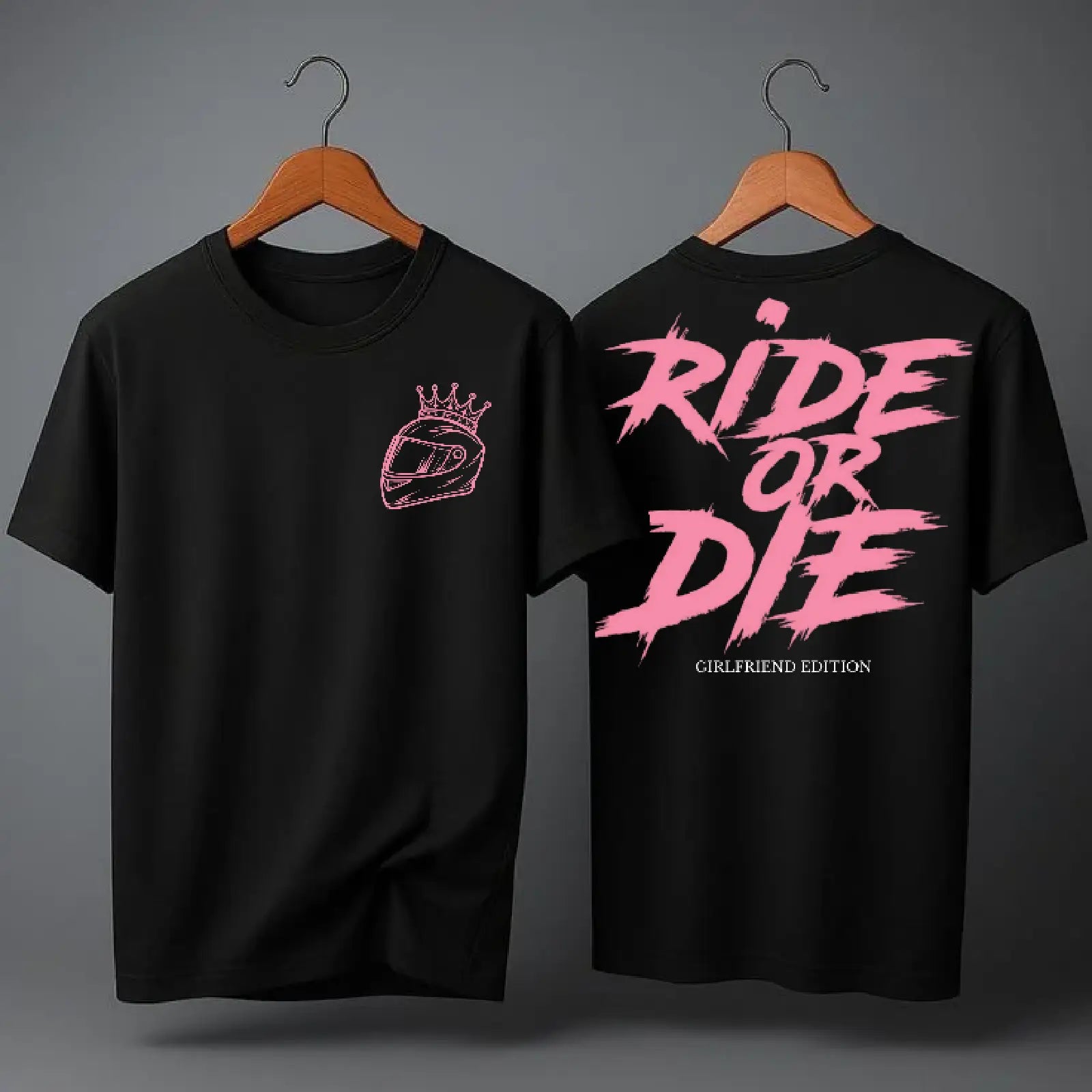 Tričko Ride or Die - Girlfriend Edition – pro partnerky motorkářů, které sdílejí vášeň pro svobodu na dvou kolech. Design vyjadřuje oddanost, lásku a odvahu jet společně životem i po silnici. Perfektní pro přítelkyně bikerů, které milují adrenalin a nebojí se jízdy.