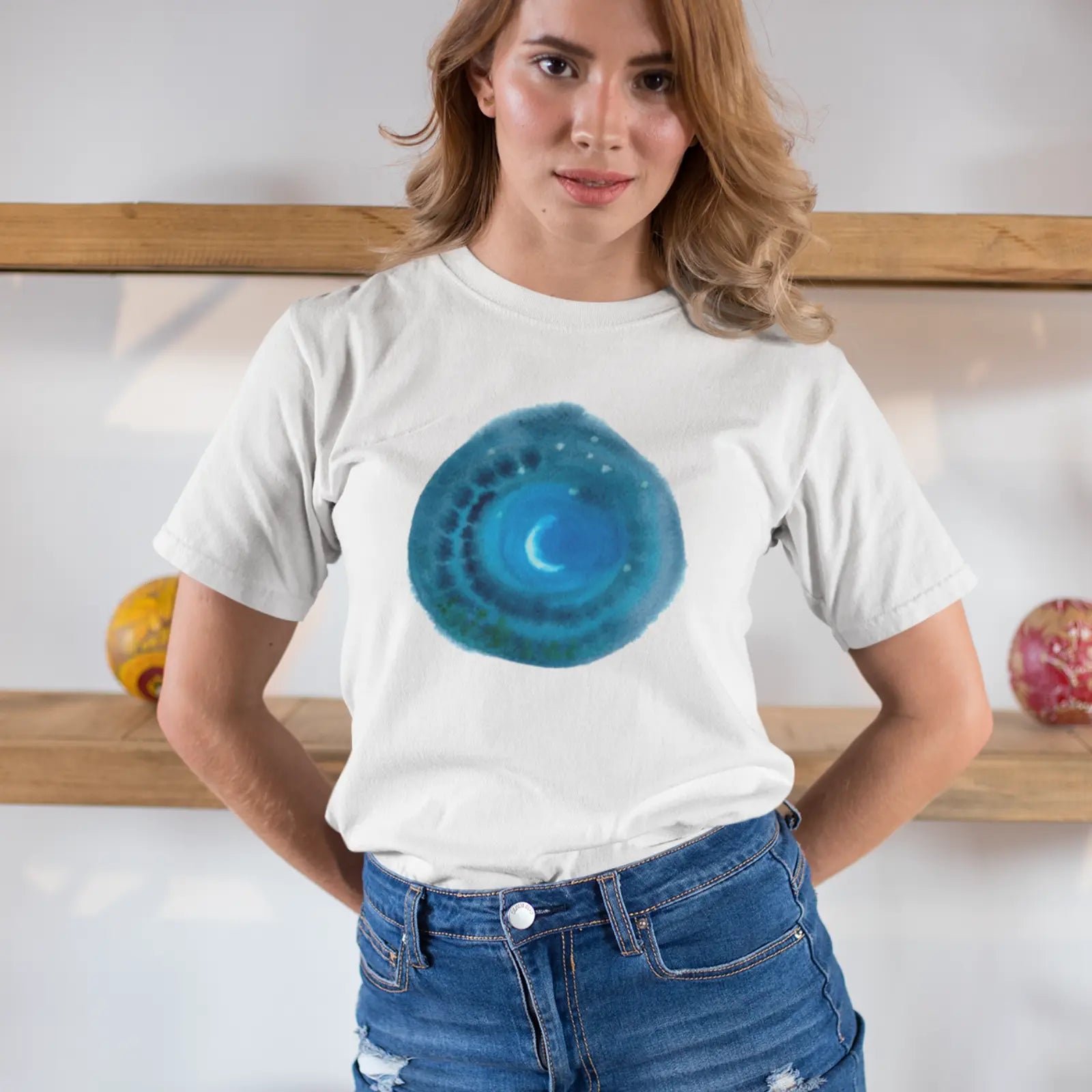 Tričko s uměleckým zobrazením měsíce, které zaujme na první pohled. Perfektní volba pro milovníky astronomie, umění a všechny, kdo chtějí nosit něco výjimečného. Design kombinuje estetiku s originalitou – není to jen další tričko s potiskem.