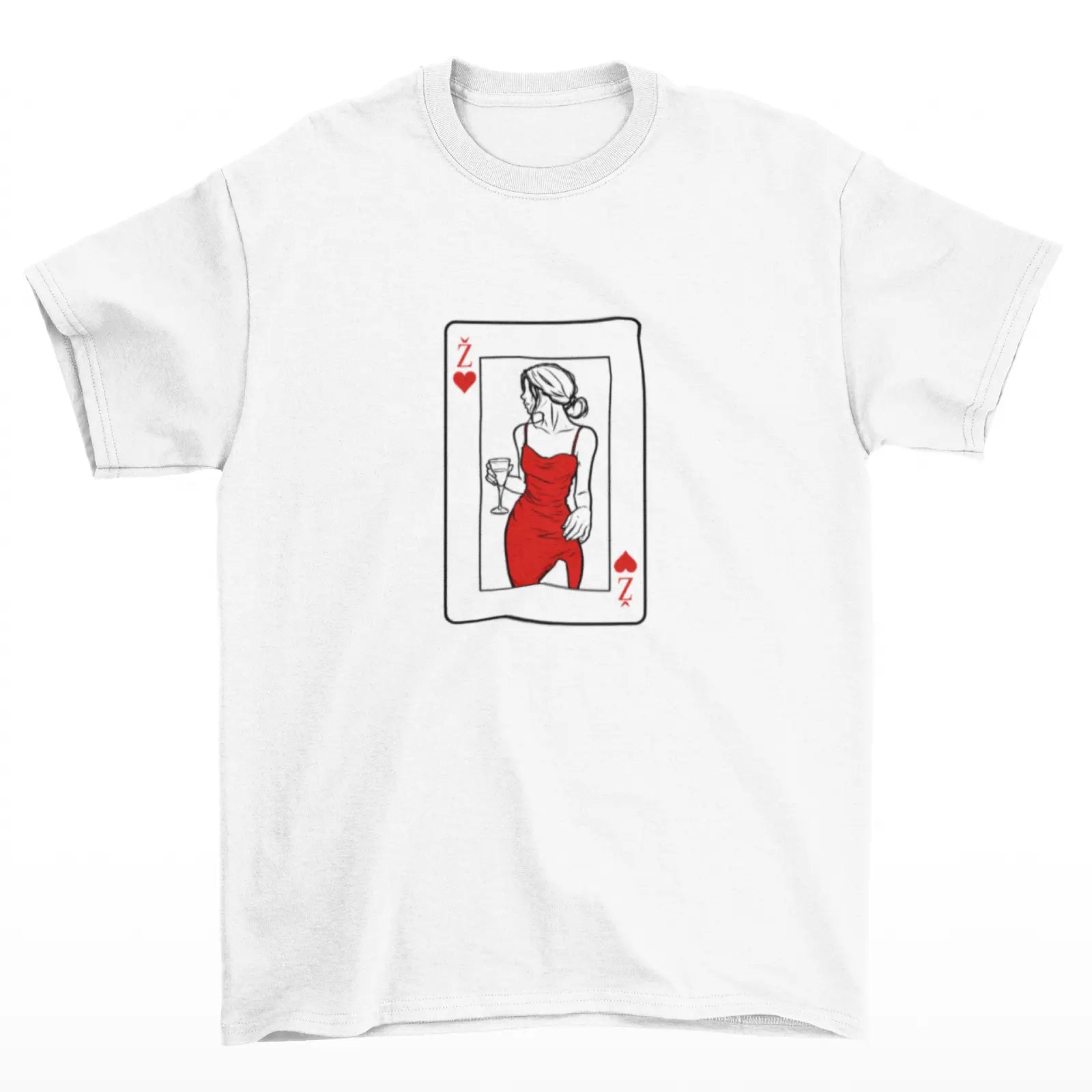 Tričko s kartou Žena Ž – protože ženy jsou vždycky trumf. Vtipný design inspirovaný karetní hrou, který oslavuje sílu a jedinečnost žen. Perfektní dárek k MDŽ, Valentýnu nebo narozeninám pro maminku, partnerku, kamarádku nebo kolegyni.